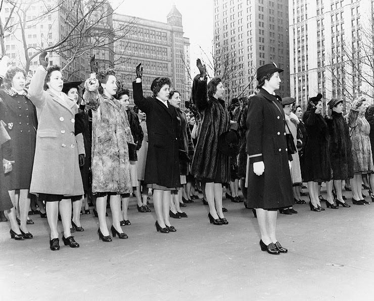 My mother-in-law, Emily Holte, was a veteran. She is no longer around for me to thank but I wanted to share a picture of her taking her oath with the WAVES (Women Accepted for Voluntary Emergency Service – don’t you love that?) in February 1943. Emily is in the first row on the far left (as you look at the picture) wearing a camel colored coat. She has her hand in the air – that’ll narrow it down for you.